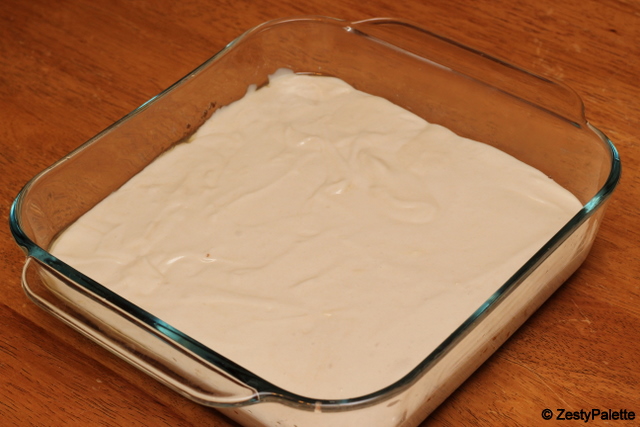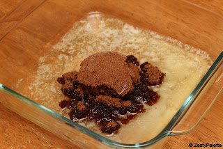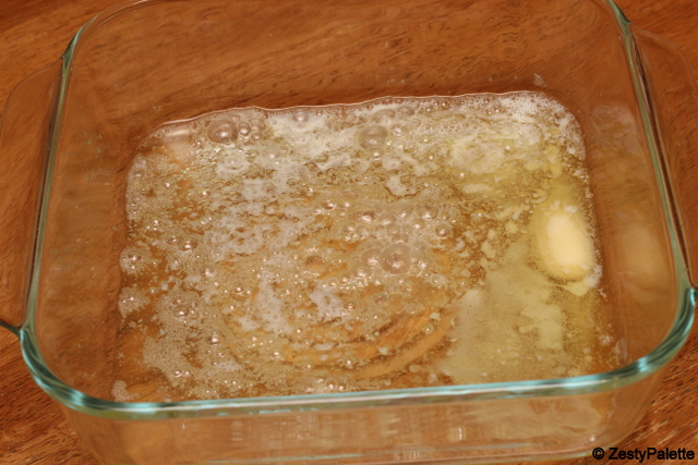 Melt 4 tbsp butter in the cake pan.