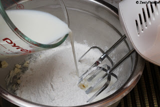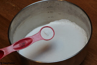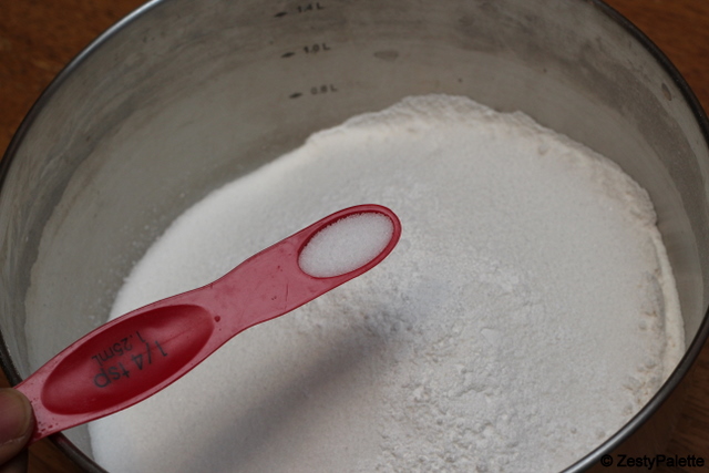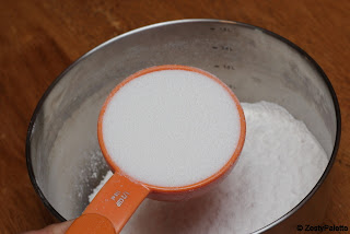 Add the dry ingredients. (flour, baking powder, sugar and salt)