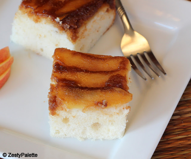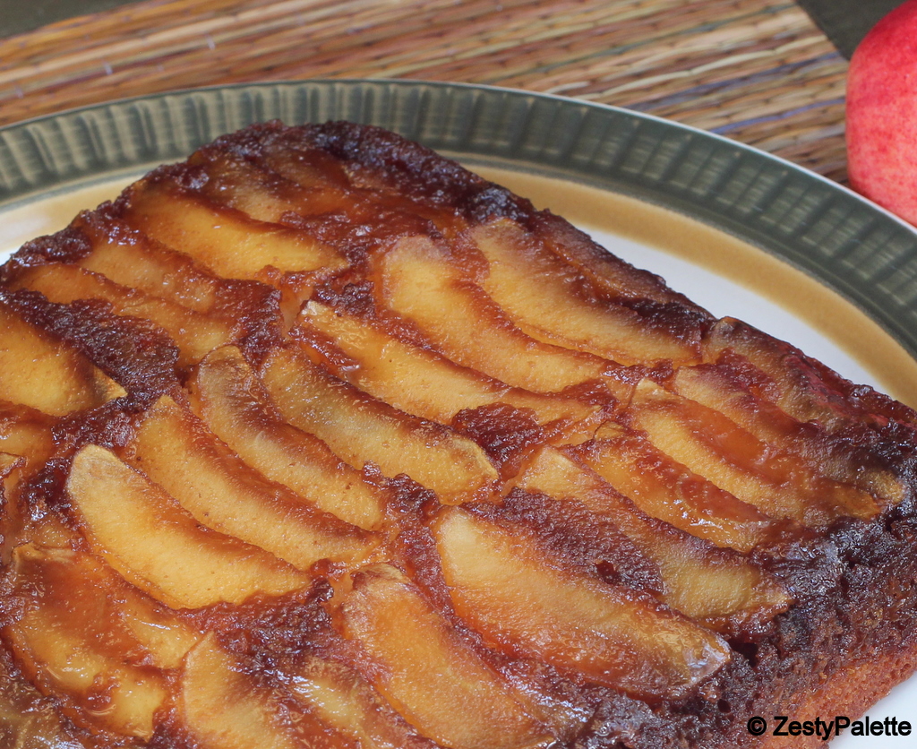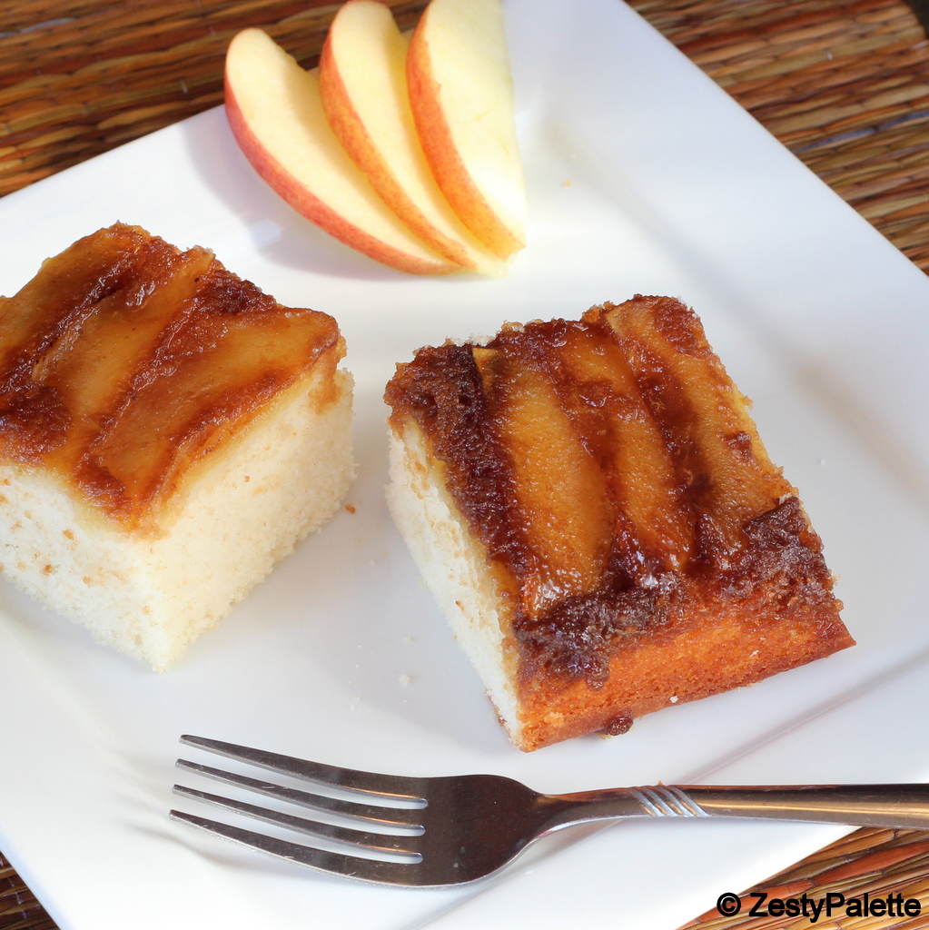 . But, when it is an occasion to celebrate we should not look into calories right !!?!!. The cake was moist and the apples were nicely caramelized and tasted awesome. My first attempt at an upside-down cake and I was extremely happy with the outcome. Now off to the recipe.
